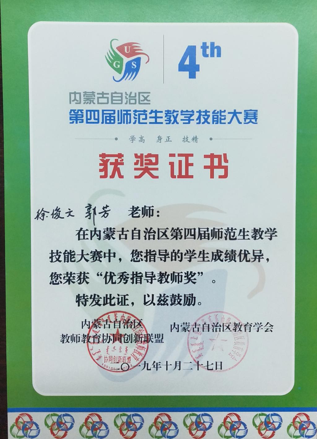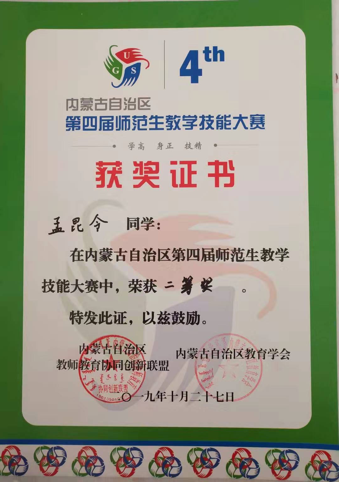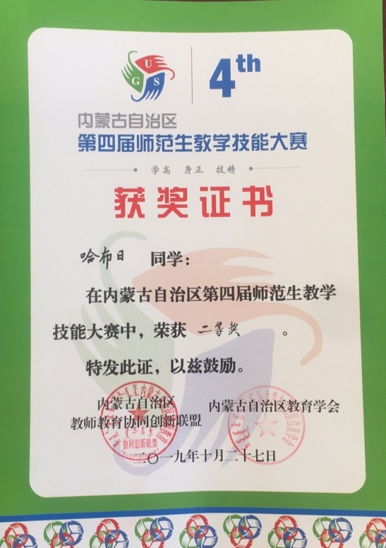 经过几个环节的激烈比拼,PP电子游戏官网取得优异的成绩,荣获PP电子游戏网站优秀指导教师的有毕力格图老师、乌日柴胡老师、徐俊文老师、郭芳老师;尼日嘎拉同学获得数学与应用数学(蒙古语)组一等奖,哈布日同学获得数学与应用数学(蒙古语)组二等奖,孟昆令同学获得数学与应用数学(汉语)组二等奖,王亚菲同学获得数学与应用数学(汉语)组优秀奖。