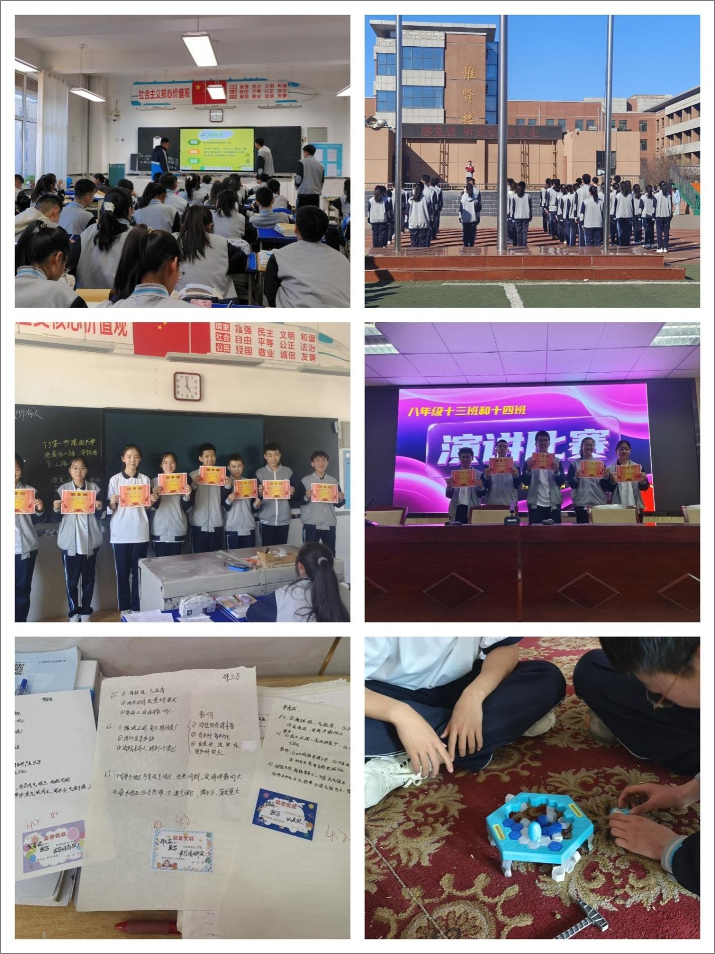 刚刚踏进民一中的校门,连教学楼的走廊都让我觉得陌生。幸好我的带教老师苏老师看出了我的紧张局促,第一时间给予了我鼓励和肯定,随后详细介绍了班级情况,完成交接工作。 同学们欢迎的掌声,办公室老师们善意的眼神,实习生同事们的陪伴,让我渐渐融入了这个大家庭。我对着八年级的作息时间表反复研究,希望尽快适应中学教师的生活节奏。那些日子,我总在晨光熹微时就踏上去班级的路,教学楼在朝霞中静默矗立,像一本等待翻阅的厚重典籍。升旗,跟三操,开班会,看自习…日复一日的相处让我和同学们熟络起来