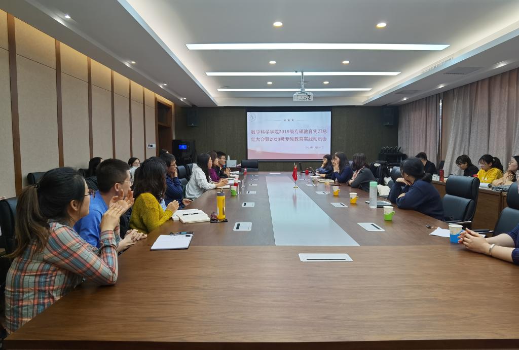 2020年12月20日,PP电子游戏官网2019级专硕教育实习总结大会暨2020级专硕教育实践动员会胜利召开。出席会议的有:呼和浩特市第四中学副校长徐月琴老师、呼和浩特市实验中学刘丽霞老师、PP电子游戏网站附属中学张生老师、PP电子游戏网站副院长包霞老师、PP电子游戏网站数学教育学位点负责人李春兰老师以及2018级、2019级、2020级数学教育方向的全体研究生。