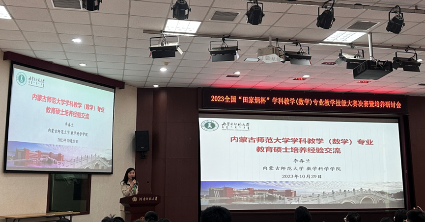 决赛结束后,李春兰教授受邀,在2023年全国“田家炳杯”学科教学(数学)专业教学技能大赛决赛暨培养研讨会上分享了PP电子游戏官网教育硕士培养的经验,与在场各校专家学者进行深入交流。