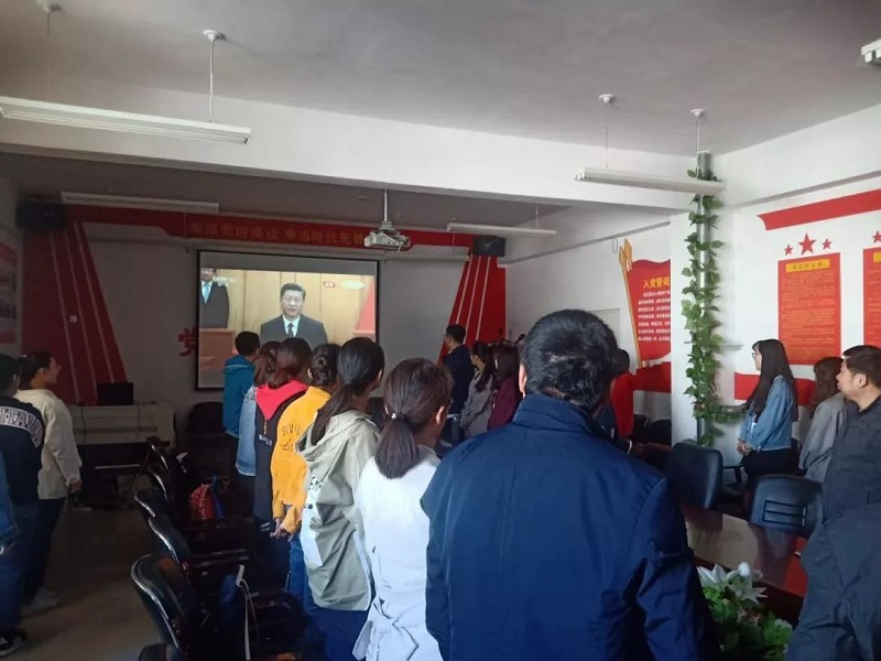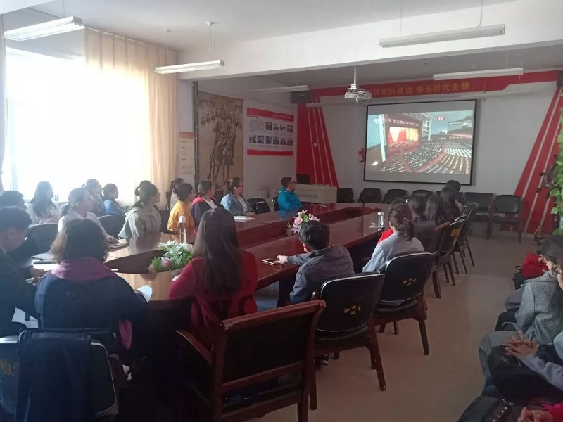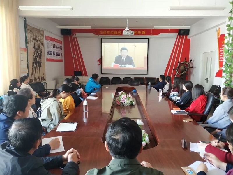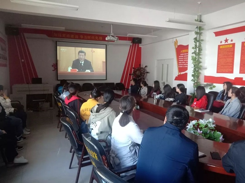 学院党总支书记扎其劳教授,学院党总支副书记、副院长季建光老师,督导员乾达门老师,团学干部3人,教师代表3人,团员36人于PP电子游戏网站盛乐校区学院楼会议室观看大会直播。