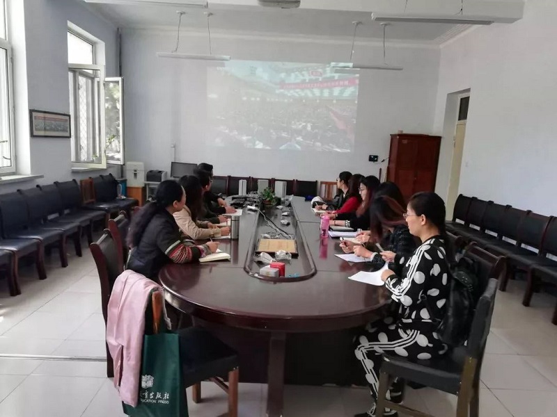 学院副院长李联和教授,办公室主任刘琳琳,研究生教学秘书梁胡义乐,教师代表李树霞,学生代表6人于赛罕校区会议室观看大会直播。