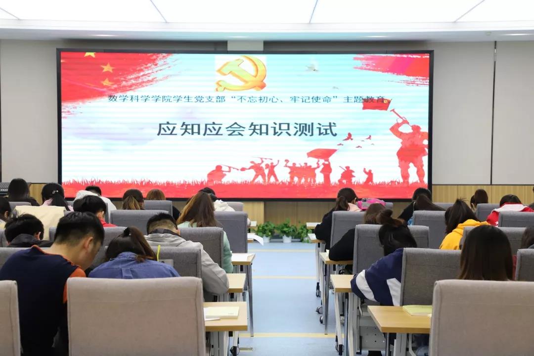 2019年10月19日,PP电子游戏网站学生党支部于学生事务中心进行“不忘初心,牢记使命”主题教育应知应会知识测试。PP电子游戏网站数学与应用数学学生党支部,信息与计算科学学生党支部及研究生党支部参加本次知识测试。数学与应用数学党支部书记皮建东、信息与计算科学学生党支部书记李帅组织学院学生党员、预备党员进行测试。