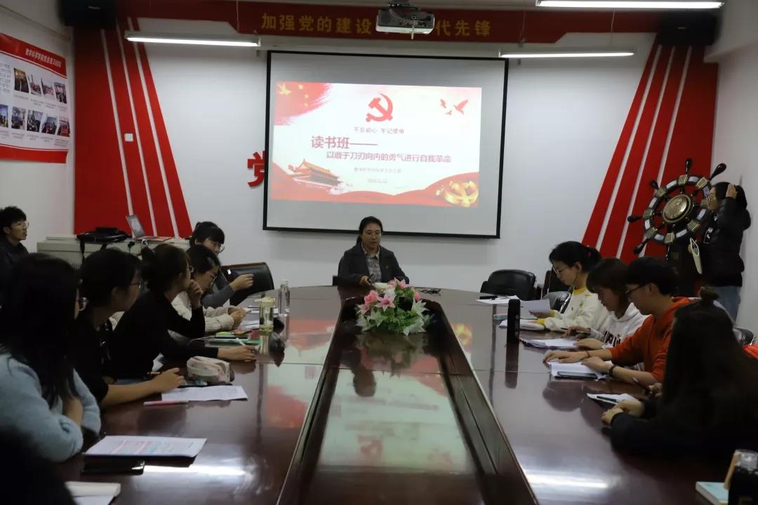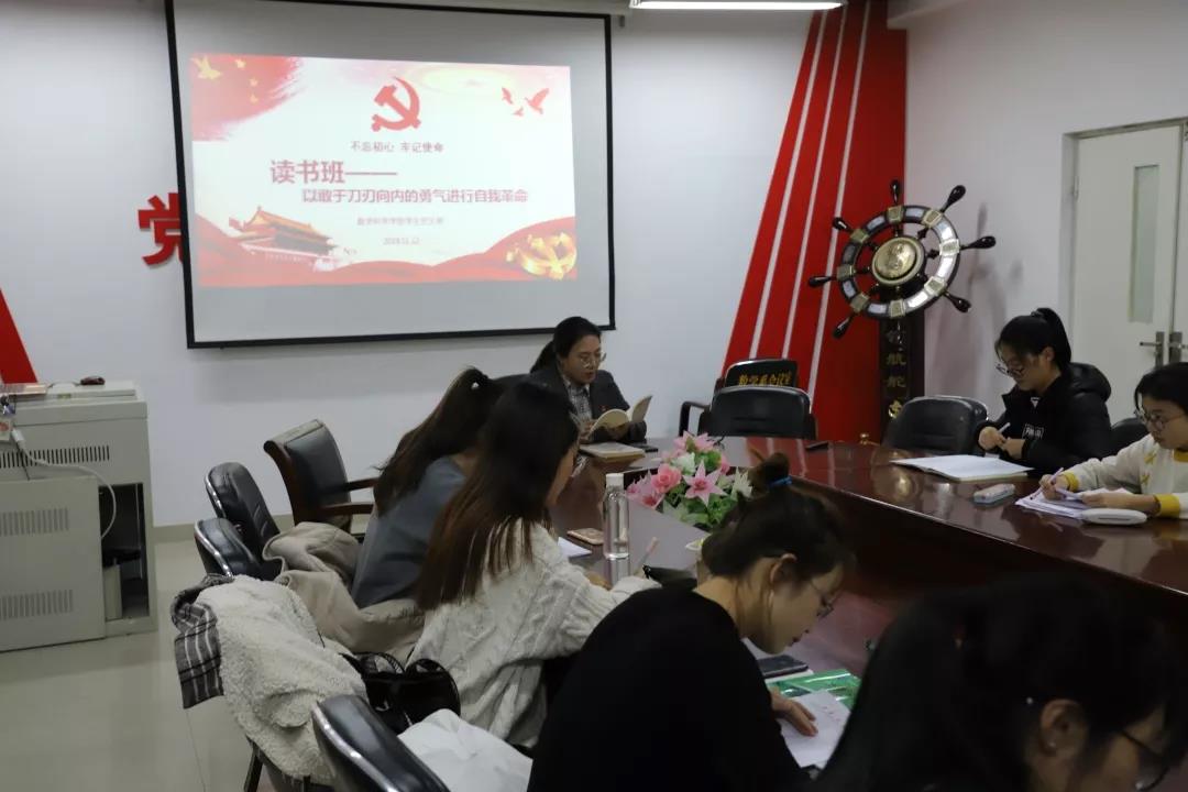 2019年11月12日,PP电子游戏网站学生党支部于学院楼会议室举办“不忘初心、牢记使命”主题教育读书班活动。PP电子游戏网站信息与计算科学学生党支部书记李帅带领各位学生党员、预备党员学习《习近平新时代中国特色社会主义思想学习纲要》一书。大家联系自己的学习体会、工作经历和成长历程,就如何理解、把握和践行初心使命、推进党的伟大自我革命,与读书班学生党员、预备党员们深入交心交流,进一步加深对习近平新时代中国特色社会主义思想的理解。