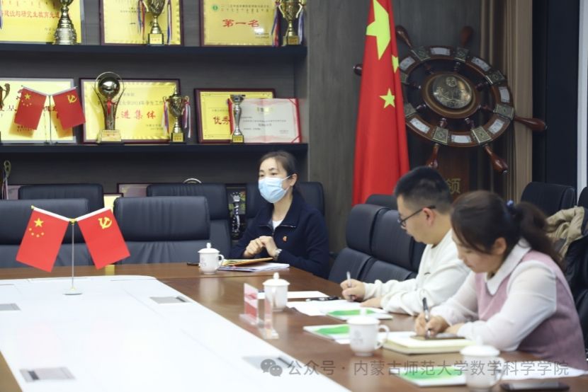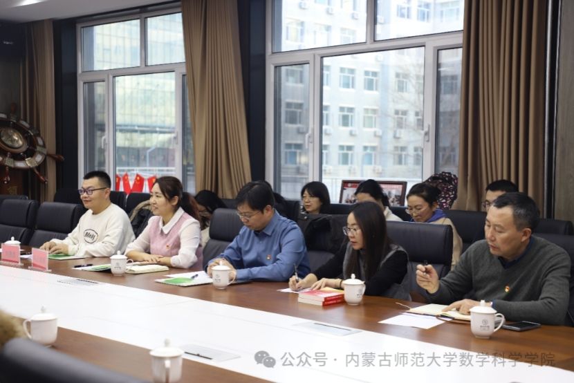 教育部重点实验室数学教师团队党支部书记乌日柴胡主持座谈会,对共建单位代表的到来表示欢迎,并介绍了支部建设、学科发展、特色工作以及“党建+业务”融合方面的成果,重点分享了学院在学科布局、国家级一流课程建设、自治区自然科学奖获奖等方面取得的突出成绩。