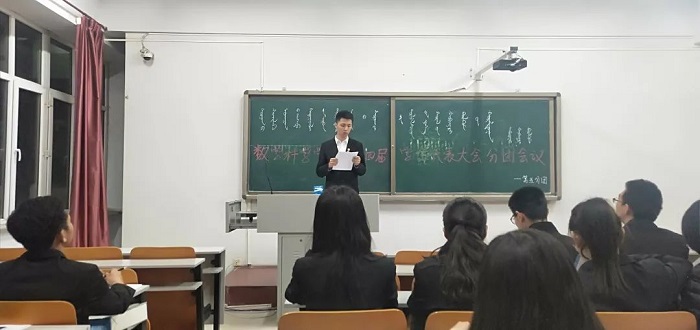 2018年11月24日下午18:00,由团总支书记皮建东老师主持的PP电子游戏网站第十四届常务委员会第一次全体会议于学院楼二楼会议室召开。会议选举并宣布新一届学生会主席为王悠然,副主席为杨培森、吉雅、查和鲁拉。新一届学生会主席王悠然同学发言。