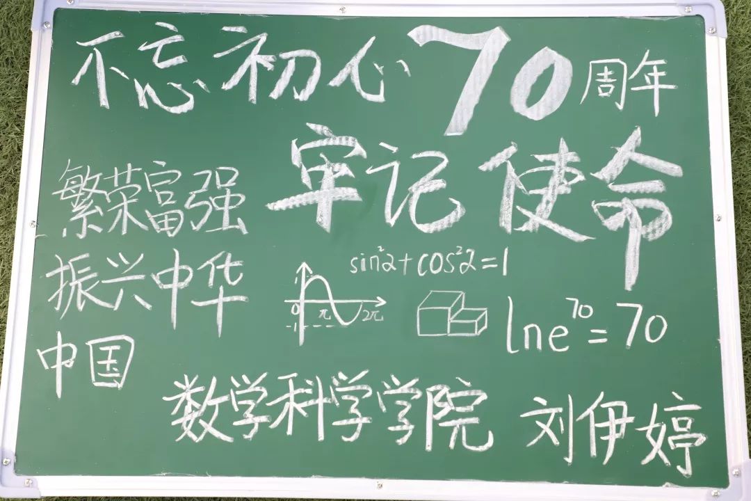 在建国70周年之际,学子们用自己的方式祝祖国70周年生日快乐,愿祖国繁荣昌盛,愿吾辈砥砺奋进,勇往直前!