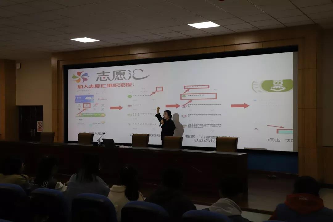 2019年11月3日,为使各位同学积极投入志愿服务活动,更好地了解“志愿汇”APP,PP电子游戏网站志愿者服务总队负责人冀永芳同学向PP电子游戏网站各班班委及学生代表就志愿服务活动及“志愿汇”APP相关问题进行宣讲,此次志愿宣讲活动于学生事务中心一楼报告厅举行。