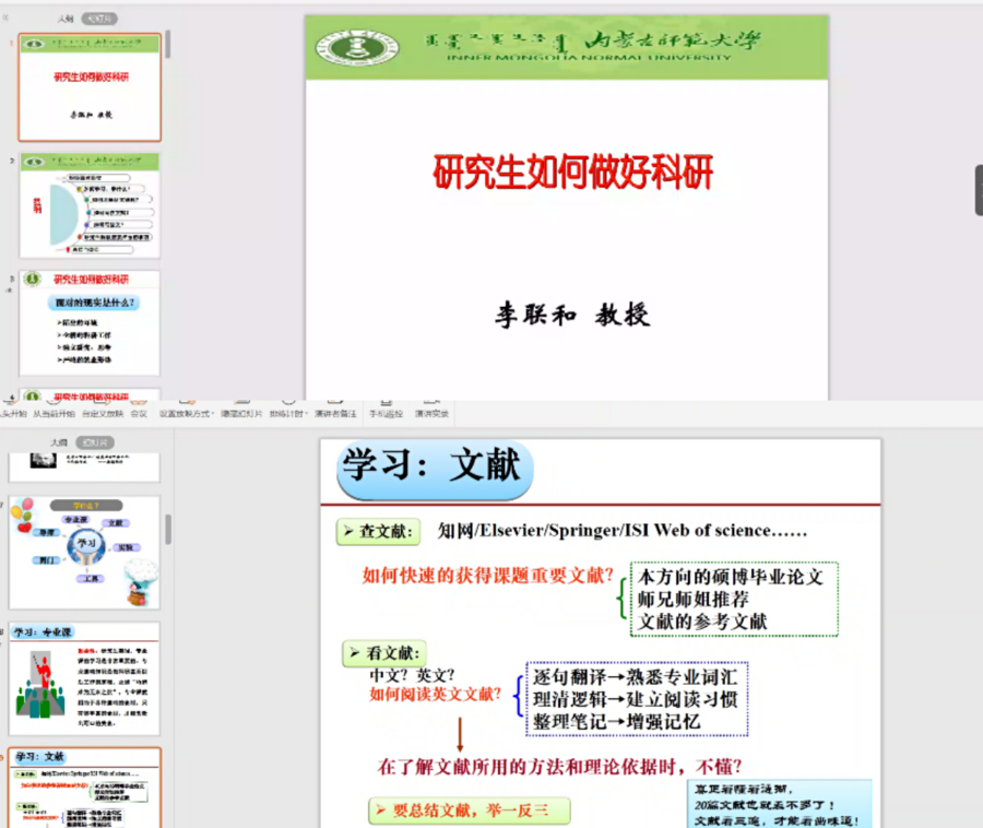 9月11日下午学院副院长李联和教授、导师李春兰副教授于学院楼会议室进行查阅文献与论文写作讲解。专业不同、方向不同,查阅的文献也就不同,李老师建议同学们多咨询、勤沟通,熟知导师从事的研究方向,多了解这个方向知名专家学者的研究成果。
