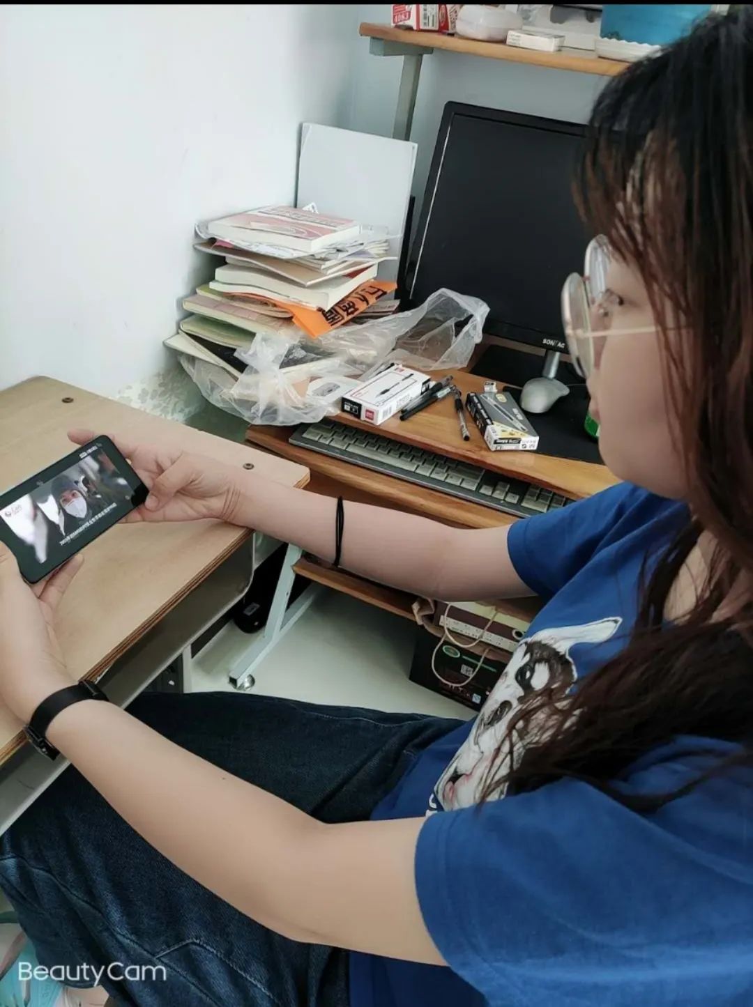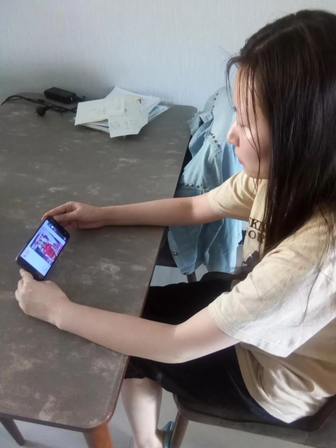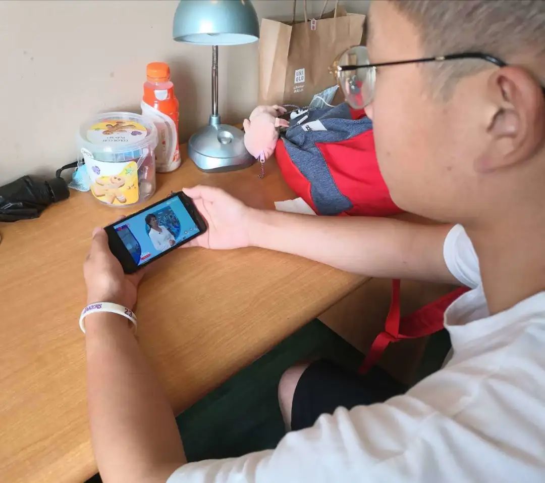 同学们认真观看直播。