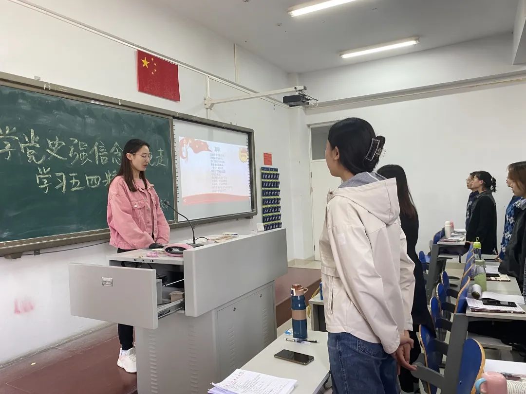 在团支书余肖同学的带领下,同学们详细了解了五四运动的发展历程与五四精神等内容。