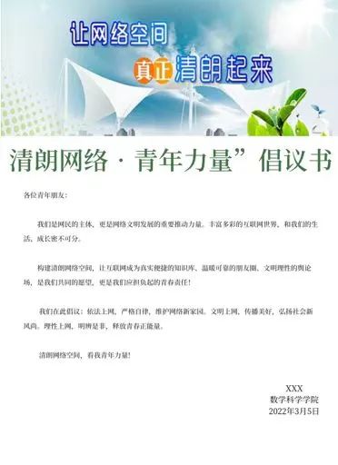为进一步贯彻落实习近平总书记和党中央的重要要求,动员广大团员青年积极参与构建清朗网络空间,PP电子游戏网站PP电子游戏网站组织各班进行了“清朗网络,青年力量”主题活动,号召大家积极按照习近平总书记提出的“勤学、修德、明辨、笃实”要求,将共青团员的先进性和担当精神延伸到网上,在网上积极发出青年好声音、形成强劲青春正能量。