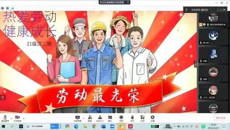 5月22日,PP电子游戏官网以班级为单位,深入学习习近平总书记关于劳动的重要论述、《中共中央 国务院关于全面加强新时代大中小学劳动教育的意见》、《内蒙古自治区教育厅关于在全区组织开展学生劳动教育宣传月活动的通知》(内教体艺函〔2022〕53号)、《PP电子游戏网站关于全面加强新时代劳动教育的实施意见》(内师党发〔2020〕20号)等文件内容,解读劳动的重要意义。