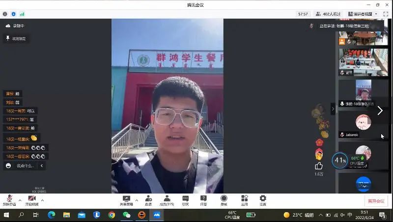 【本科生代表张鹏在群鸿餐厅】