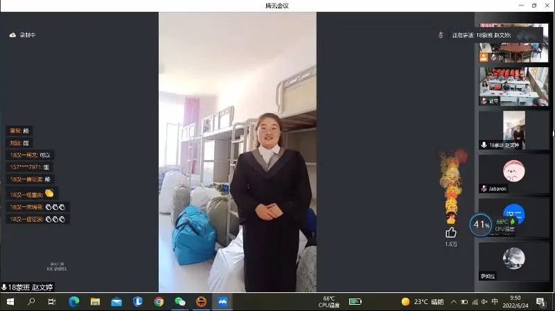 【本科生代表赵文婷在宿舍】