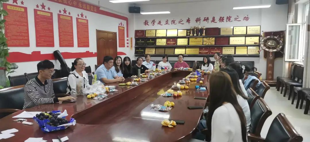在学院楼的会议室里,22级研究生欢聚一堂,副书记、副院长季建光老师和学就办副主任刘沙沙老师代表学院向研究生送来中秋节的慰问。