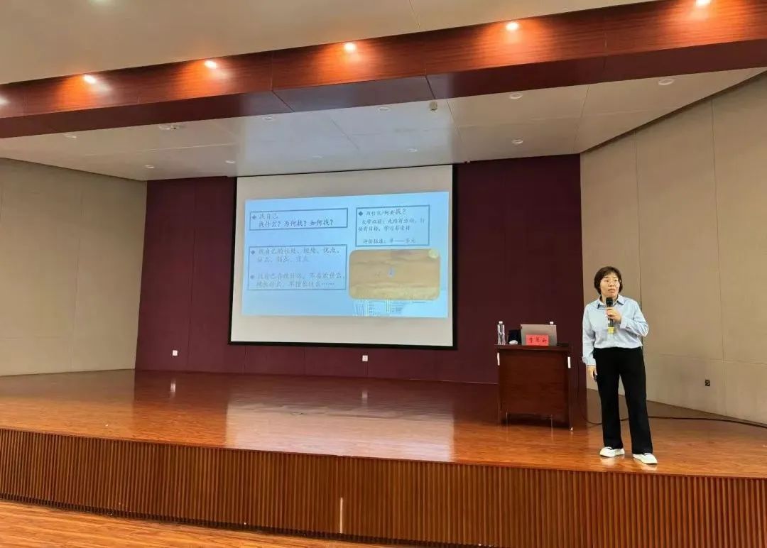 学校心理健康教育中心主任李翠云老师从大学生对心理健康概念的认知以及自我认知等不同方面为同学们讲授了大学生心理健康的重要性和主要内容。她鼓励同学们一定要正确认知和评价自己,要尽快学会独立,快速适应新环境。