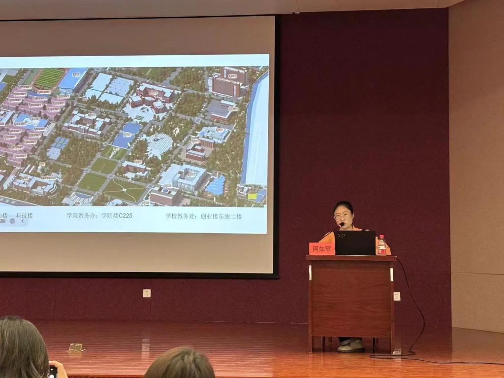 学院教学与实践办公室副主任阿如罕老师为大家介绍了本科生培养方案、学籍管理、选课及其相关操作的具体内容。同时,阿老师还为大家讲解了考核与成绩记载、学业预警以及毕业要求的要点。
