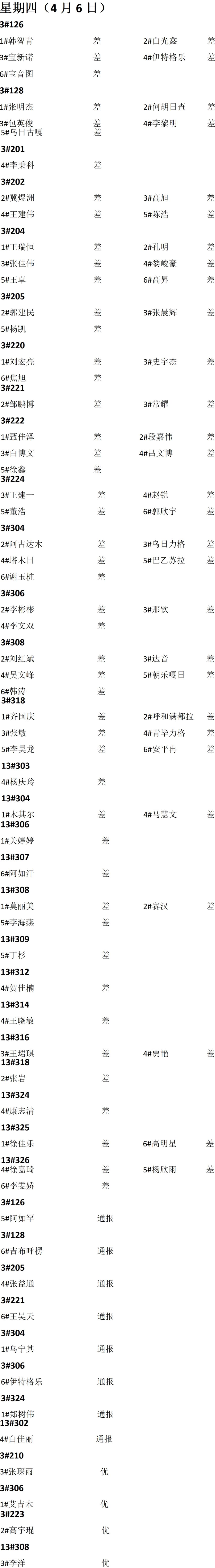 第七周旷晚自习情况