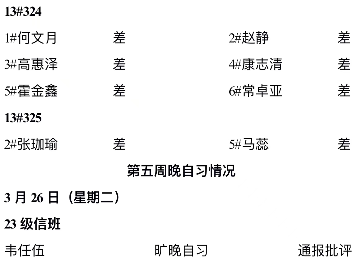 PP电子游戏网站2023——2024年度第二学期第五周通报情况