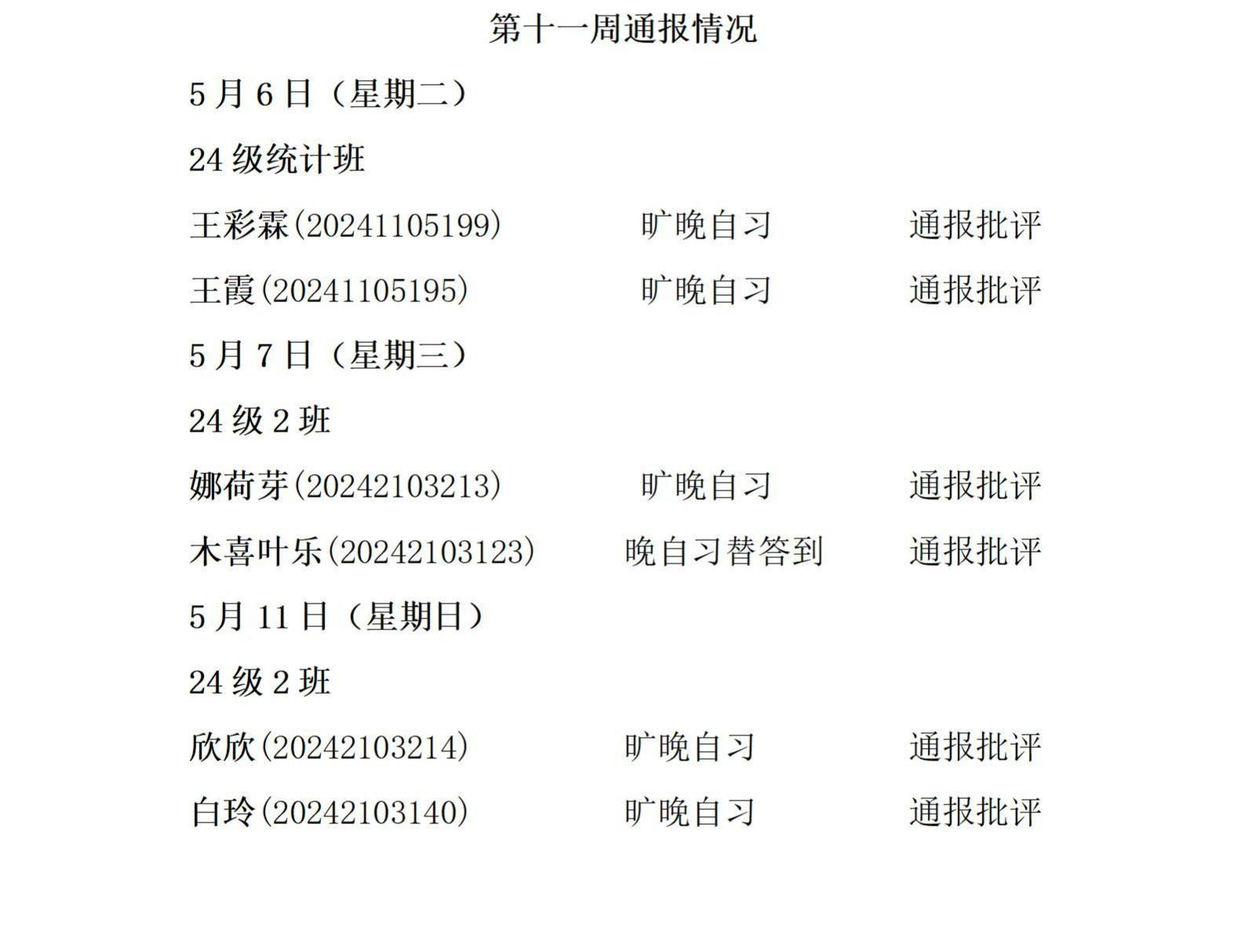 PP电子游戏网站2024——2025年度第二学期第十一周通报情况