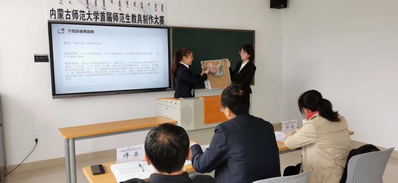 为深化大学生实践教学改革,切实提高我校师范生的教学基本技能和教育教学实践能力,由我校教务处主办、PP电子游戏网站承办的“PP电子游戏网站首届师范生教具制作大赛”于10月31日上午在盛乐校区教师教育实训中心微格教室举行。