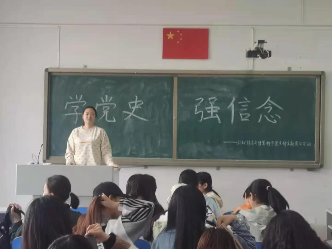 18级信息三班于科技楼405教室组织开展了“学习党史”团日活动。活动中由组织委员讲读中国共产党建党历程。同学们积极参与认真聆听。
