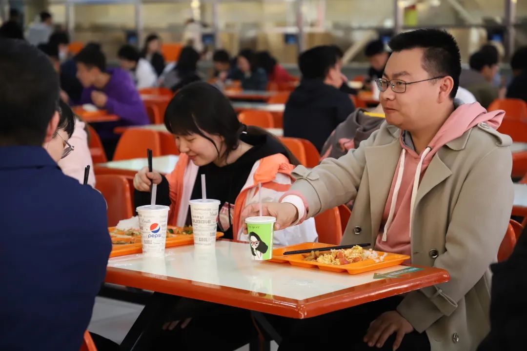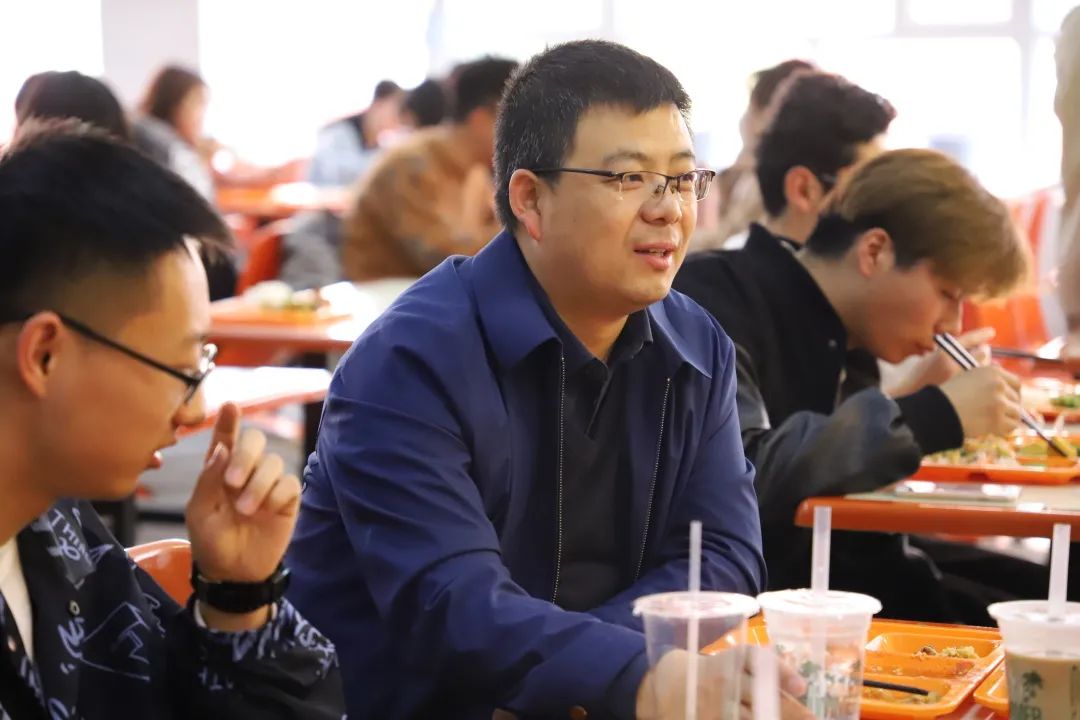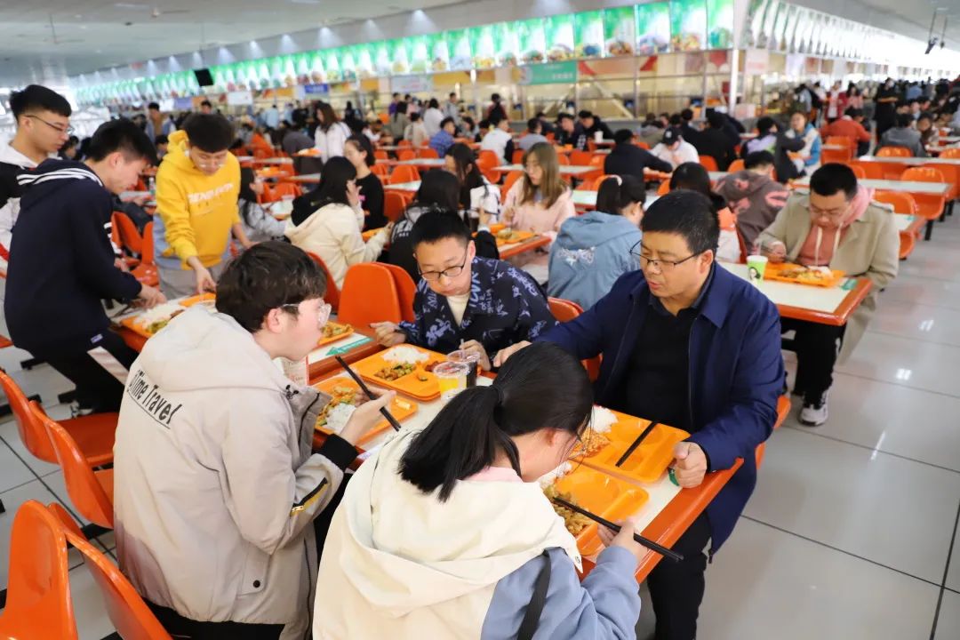 2021年4月13日下午,皮建东老师与PP电子游戏官网学生思想政治工作辅导员刘勇波老师与同学们一同走进食堂。