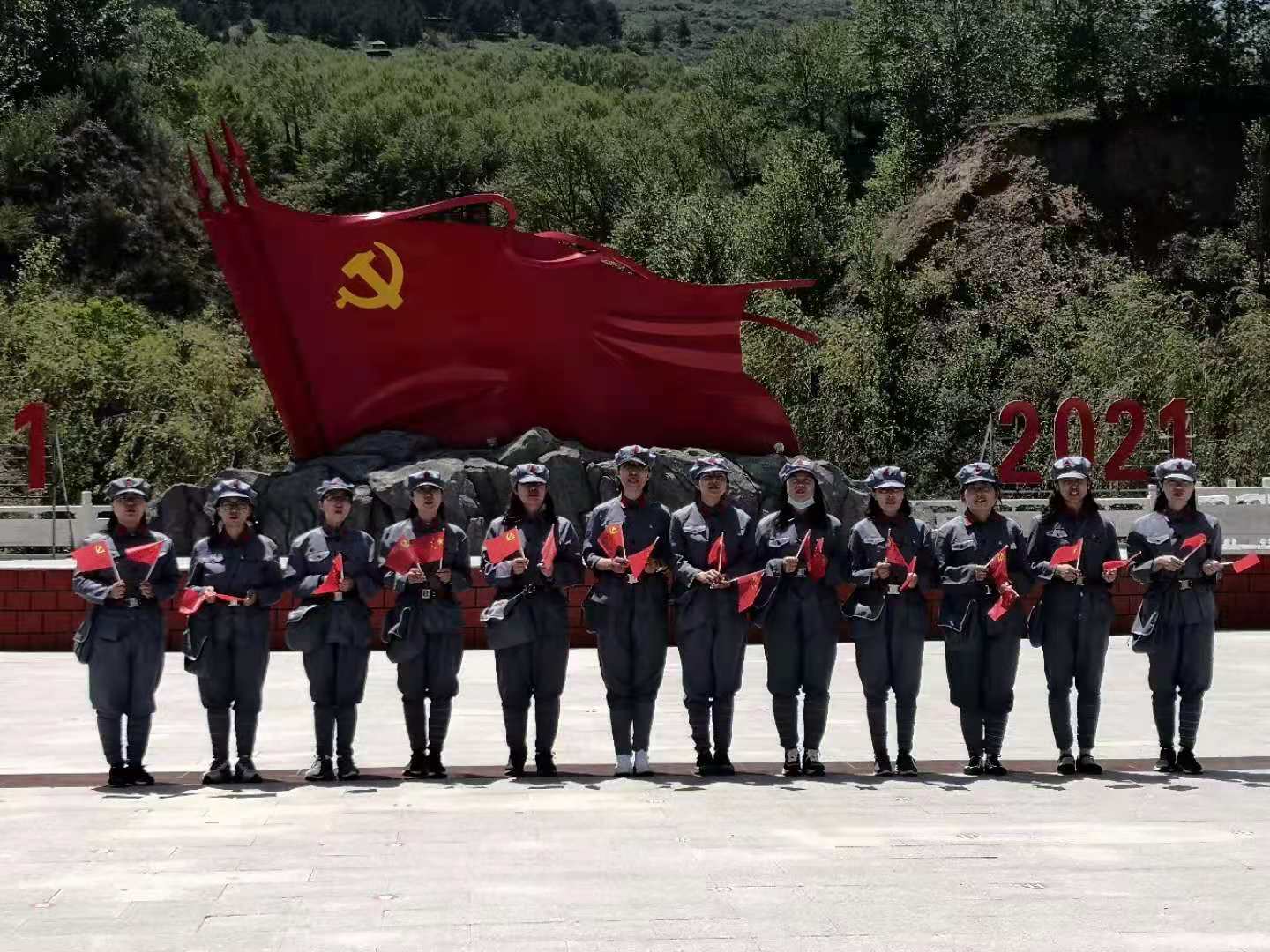 本次活动中,全体教师身着红军服在讲解员的现场讲解下依次参观了北堡村抗战遗址、老牛坡廉政长廊、老牛坡党支部旧址、老牛坡红色革命主题广场、老牛坡党支部展馆和青龙洞山生态文明建设点,一起观看了《红色老牛坡》专题片,深入了解了老牛坡党支部成立以来的革命斗争史和发展史,感受革命前辈们一心向党、一心为民、英勇斗争的崇高精神,深刻领会了“爱国爱家、依靠群众、百折不挠、敢于胜利”的老牛坡精神。同时在党委书记扎其劳的带领下,在老牛坡党支部党旗广场一起庄严的重温了入党誓词,激情高唱红歌《没有共产党就没有新中国》,最后在北堡革命烈士纪念碑广场举行了敬献花篮仪式,一起缅怀革命先烈。