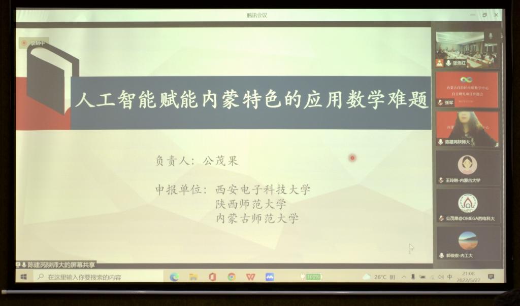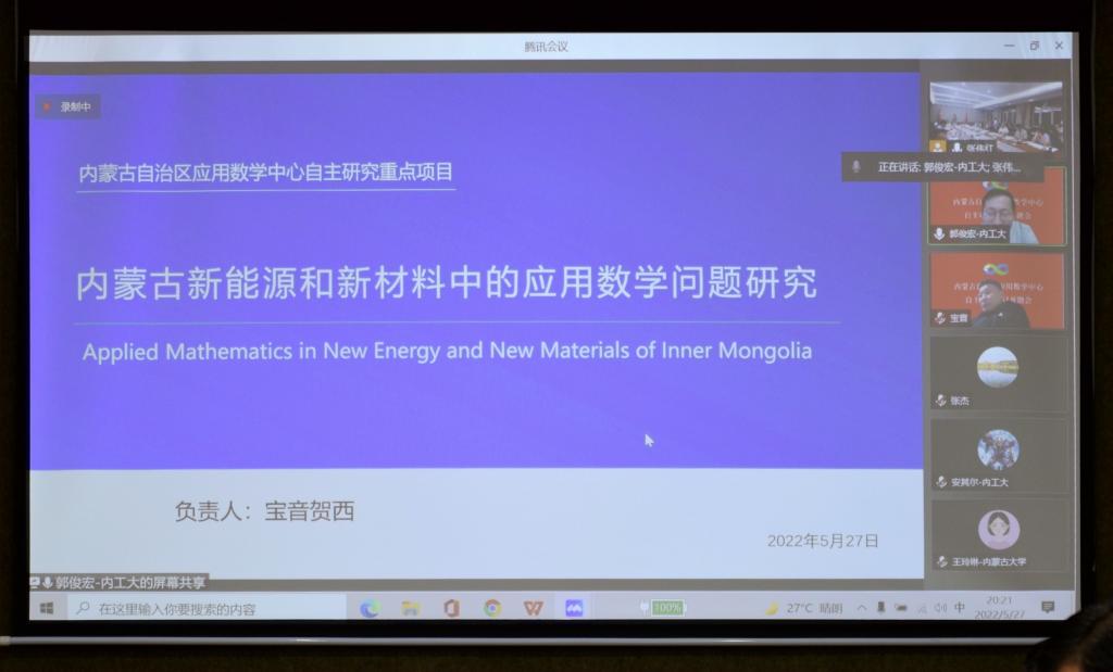 5月27日,内蒙古自治区应用数学中心(以下简称中心)自主研究项目启动会在我校召开,会议采取线上、线下相结合的方式进行。自然资源部第一海洋研究所研究员、中国石油大学(华东)海洋与空间信息学院院长张杰,内蒙古工业大学副校长宝音贺西,西安电子科技大学人才处处长宫茂果等项目负责人以及来自中国石油大学、西安电子科技大学、陕西师范大学、内蒙古大学、PP电子游戏网站、内蒙古农业大学、内蒙古工业大学、内蒙古财经大学、内蒙古宜和新能源科技有限公司、北京鉴衡认证中心等区外、区内高校和企业的项目团队骨干,我校党委书记阿拉坦仓,党委委员、副校长宫箭及相关部门、学院负责同志共40余人参加项目启动会。项目启动会由中心办公室主任、PP电子游戏网站院长扎其劳主持。