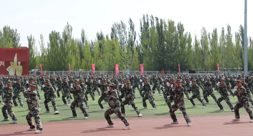 分列式方队以飒爽英姿迎面走来。军训期间,他们恪守“献身、求实、团结、奋进”的校训,与朝日争辉,同夕阳逐走。田径场中洒下过他们的汗水,路灯下回荡过他们的号声。