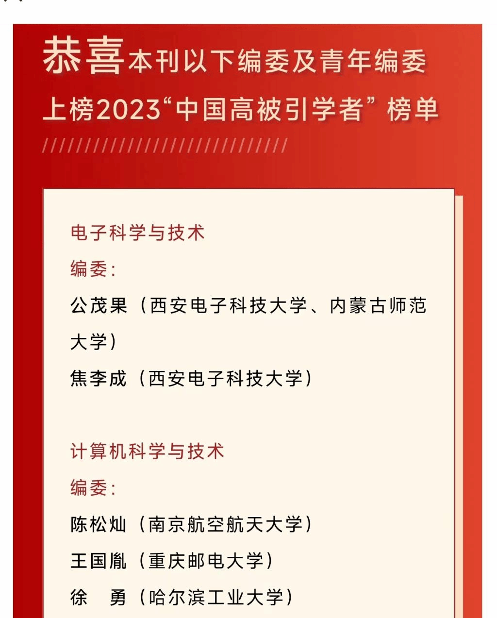 2023“中国高被引学者”上榜共计5801人,来自496所高校、企业及科研机构,覆盖了教育部10个学科领域、84个一级学科。PP电子游戏网站副校长公茂果教授上磅2023“中国高被引学者”榜单。