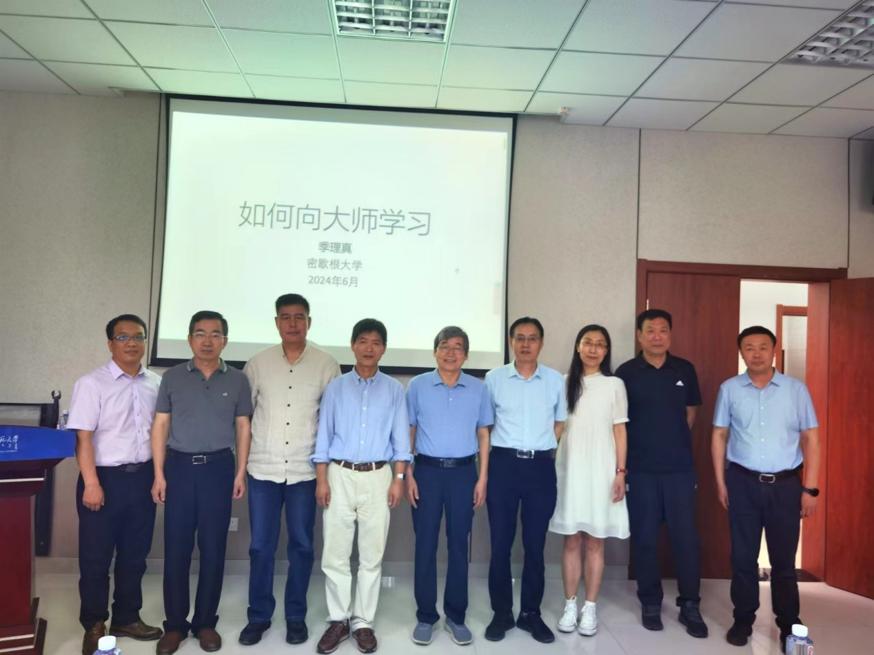 6月13日下午,无穷维哈密顿系统及其算法应用教育部重点实验室、教育部数学与应用数学专业虚拟教研室、内蒙古应用数学中心系列讲座在我校赛罕校区文史楼339学术报告厅举行。著名华人数学家、美国密西根大学教授、清华大学丘成桐数学科学中心兼职教授季理真教授应邀作了题为“如何向大师学习”的学术报告。我校原党委书记、内蒙古应用数学中心主任阿拉坦仓教授,科学技术史研究院郭世荣教授、代钦教授和原研究生院院长刘官厅教授及PP电子游戏官网师生90余人聆听了本次报告。报告由包霞副院长主持。