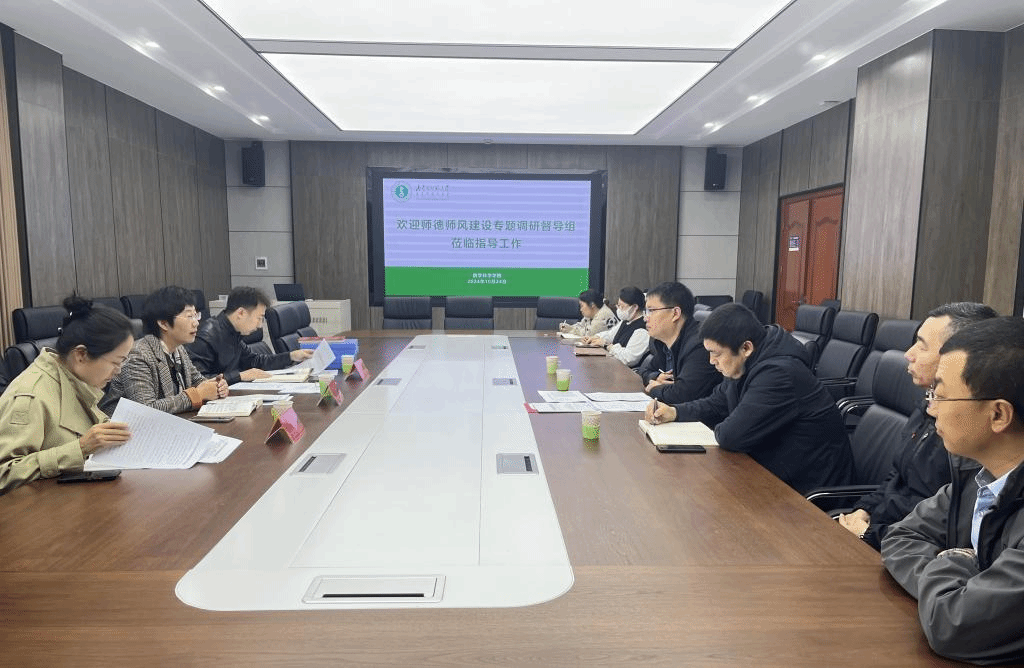 10月24日上午,教务处侯欣舒副处长一行来PP电子游戏官网开展师德师风建设调研督导工作,学院党委书记陈宏研、党委副书记、副院长季建光、师德师风监督员、部分环节干部和教师代表参加了会议。