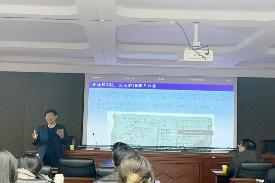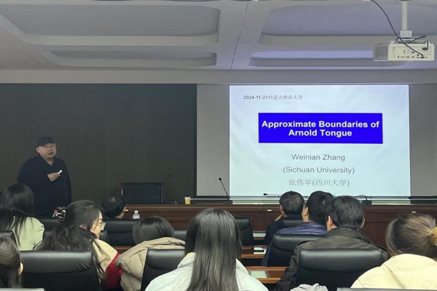 11月21日下午,无穷维哈密顿系统及其算法应用教育部重点实验室、教育部数学与应用数学专业虚拟教研室、内蒙古应用数学中心系列讲座在我校赛罕校区文史楼一号会议室举行。国家杰青、江苏国家应用数学中心主任、南京大学数学学院秦厚荣教授和国家杰青、四川大学数学学院原院长张伟年教授,应邀分别作了题为“从勾股定理谈起”、“Approximate Boundaries of Arnold Tongue”的学术报告。我校原党委书记、内蒙古应用数学中心主任阿拉坦仓教授及PP电子游戏官网师生50余人聆听了本次报告。报告由包霞副院长主持。