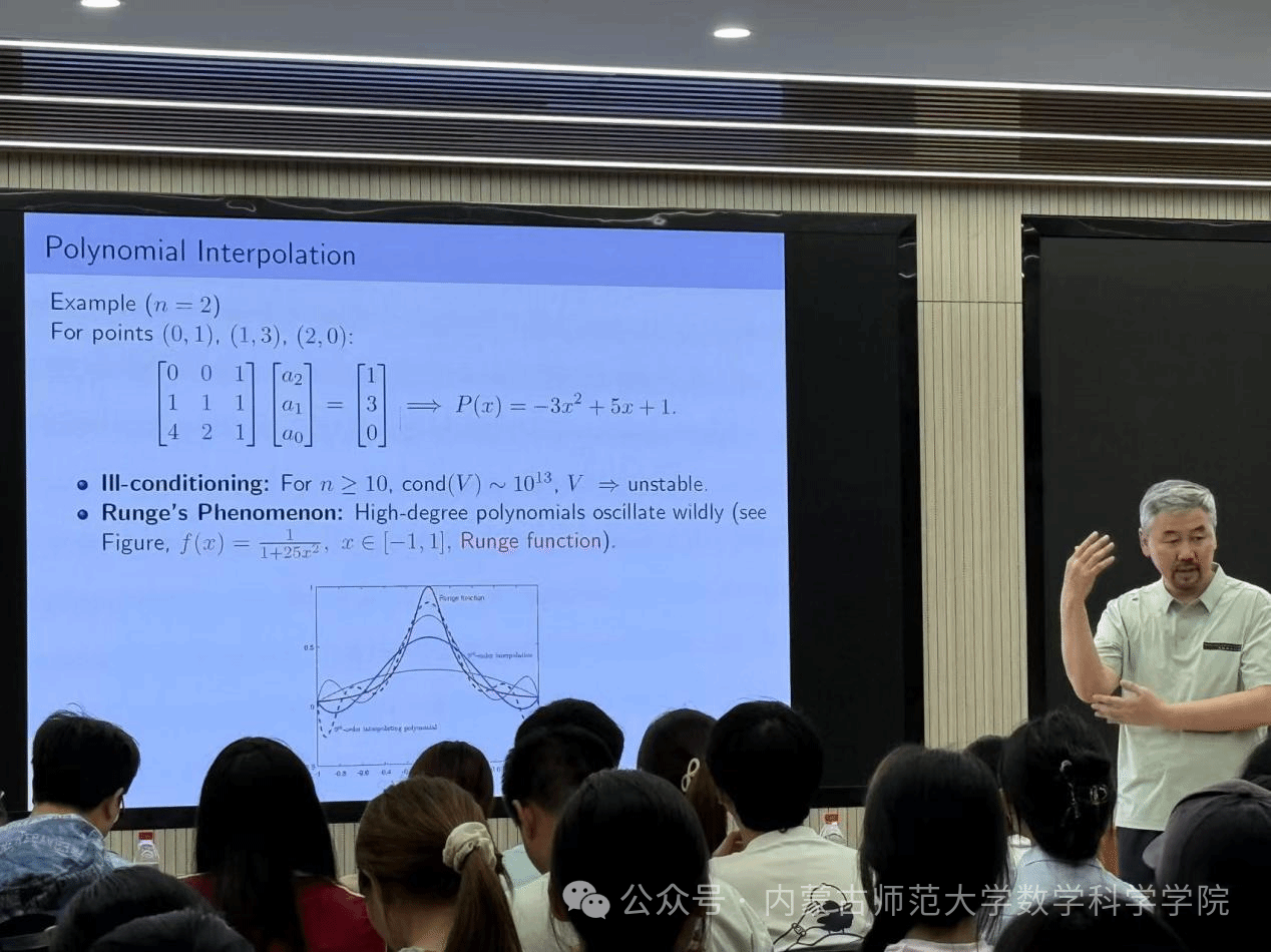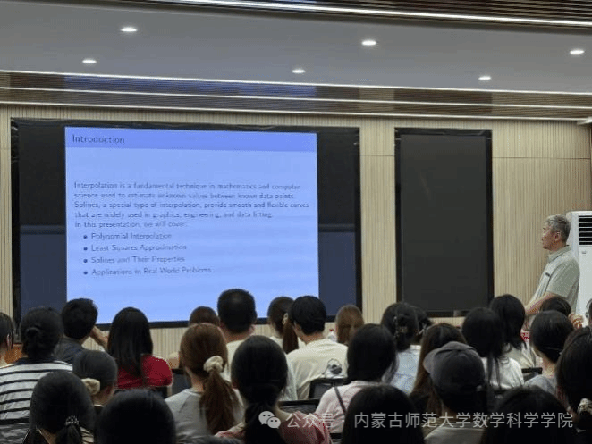 2025年7月4日,PP电子游戏网站PP电子游戏网站在盛乐校区C区C301教室举办了明安图大讲堂,特邀蒙古国教育大学的Renchin-Ochir Mijiddorj教授,为在场师生带来了一场精彩的关于拉格朗日插值及多项式插值算法的科普讲座。此次讲座由PP电子游戏网站副院长萨和雅主持,2025年数学建模暑期培训班的全体学员参与了此次交流学习。