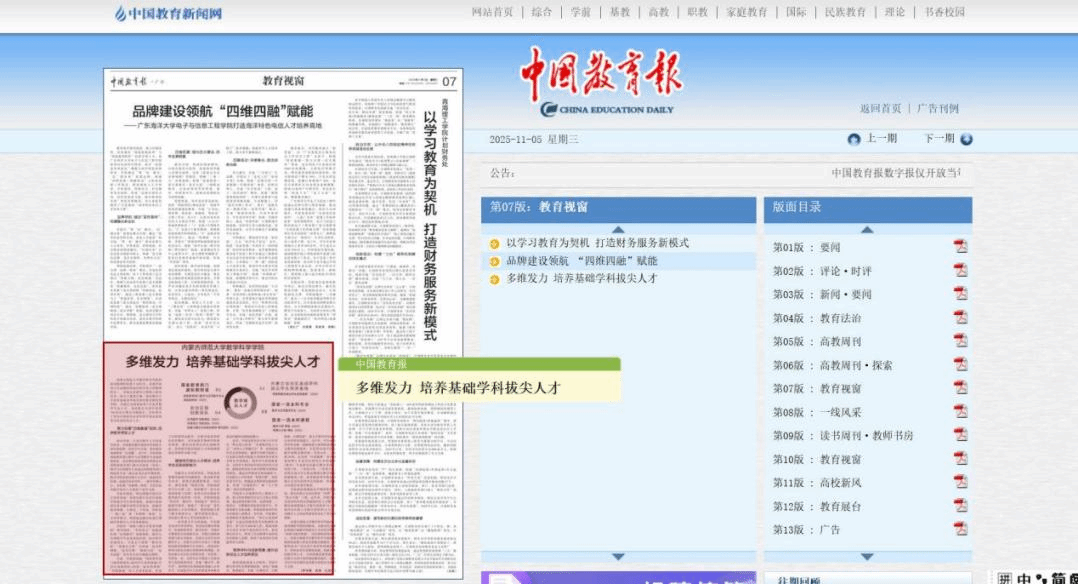《中国教育报》2025年11月5日第07版教育视窗,以”多维发力 培养基础学科拔尖人才“为题报道PP电子游戏网站PP电子游戏网站基础学科拔尖人才培养工作成效。全文链接:http://paper.jyb.cn/zgjyb/h5/html5/2025-11/05/node_1.htm?v=1&curr=6
