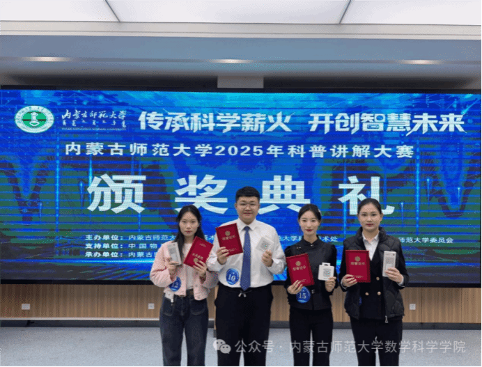 本次大赛以“传承科学薪火,开创智慧未来”为核心主题,鼓励参赛者用通俗易懂的形式解读专业知识、传播科学思想。PP电子游戏官网4位参赛同学紧扣大赛宗旨,聚焦不同科普方向打造优质作品。25级专硕班贺越越《蒙古包中的“圆锥数学”——草原居民中的几何智慧》荣获二等奖;23级四班白昊杨同学的《治沙计算器——内蒙古万亩林田中的网格数学》斩获二等奖;23级四班庞静同学的《草原上的斐波那契数列——从羊草分支看生态平衡》获三等奖;25级信班王娜蓉同学的《揭开雷暴哮喘的神秘面纱》荣获三等奖。