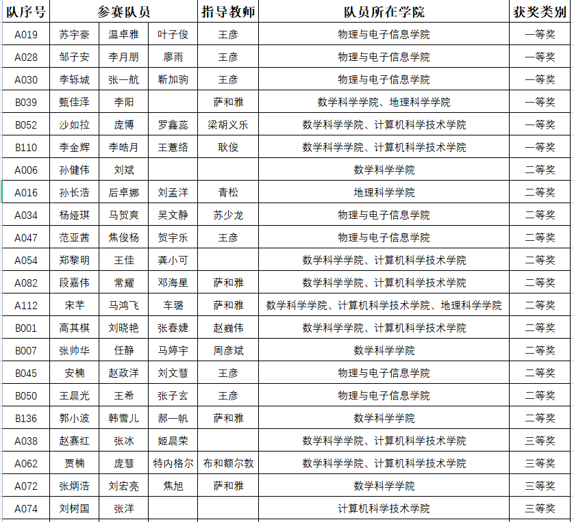 PP电子游戏网站第六届数学建模竞赛暨2023年全国大学生数学建模竞赛校级选拔赛于2023年5月12日至5月15日举行。本次比赛共有来自PP电子游戏网站、计算机科学技术学院、物理与电子信息学院、经济管理学院、地理科学学院、化学与环境科学学院、旅游学院、教育学院、心理学院、文学院、外国语学院等11个学院共143支队伍参赛,组委会共回收论文113篇。经过组委会的认真评阅,共评出一等奖6组,二等奖12组,三等奖16组。具体名单如下: