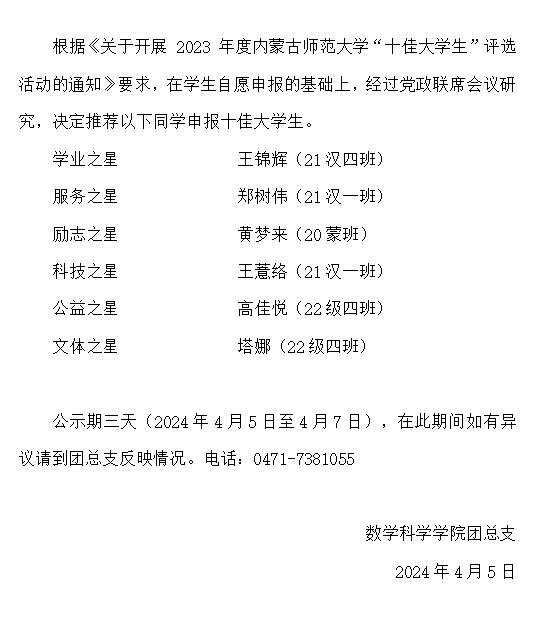 PP电子游戏网站2023年度“十佳大学生”推荐名单公示