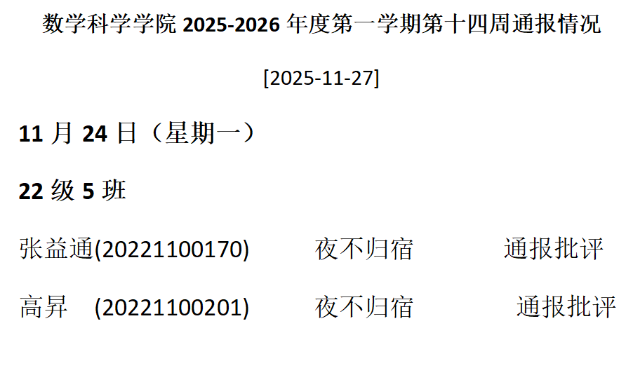 PP电子游戏网站2025-2026年度第一学期第十四周通报情况