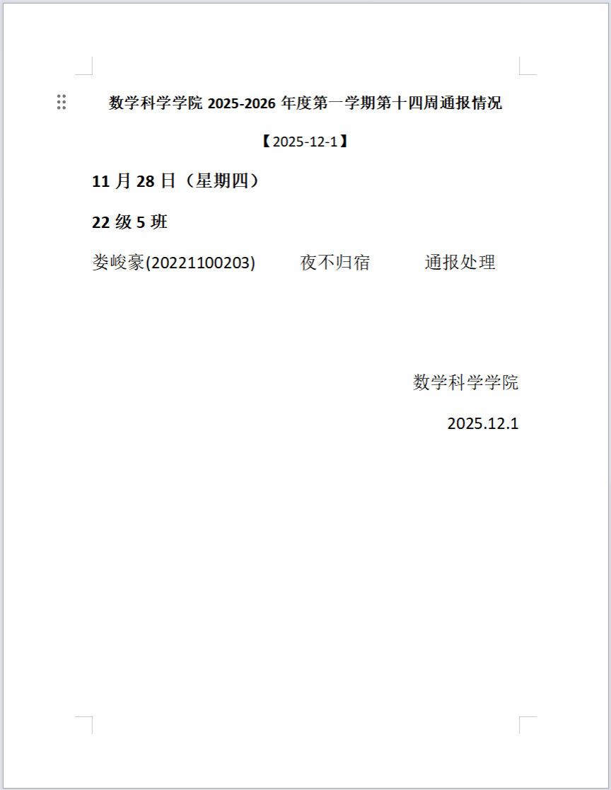 PP电子游戏网站2025-2026年度第一学期第十四周通报情况